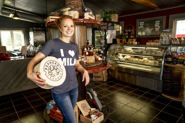 At Redhead Creamery, you will actually discover more than Alise’s own creations. Alise showcases products made by local vendors she partners with, too. Just as deep ties to her cows help her produce incredible cheese, Alise strongly believes that devotion to the dairy community overall informs the success of her creamery.
